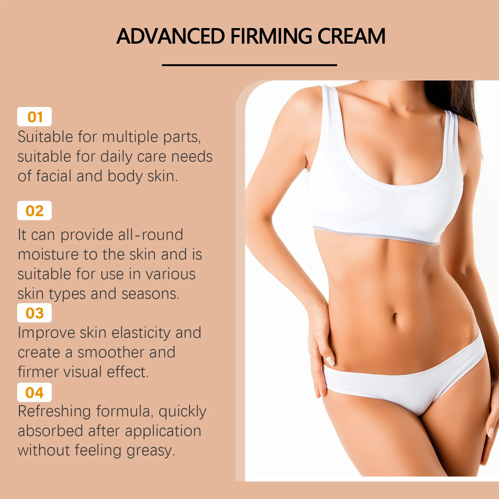 1.Efeito de lifting instantâneo: Nosso creme corporal antirrugas e reafirmante proporciona uma sensação de lifting imediata, suavizando as imperfeições da pele e aumentando sua elasticidade para uma aparência mais tonificada.